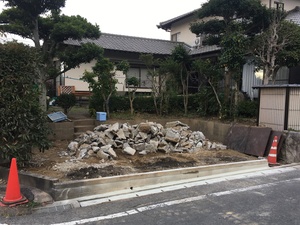 この画像は、基礎ブロックと土間コンクリートを割って集めた様子です。