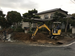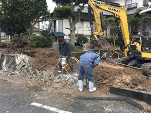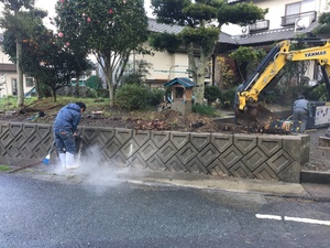 間知ブロックの一部解体が終わりました。この後土留めの既存ブロックを解体していきます。