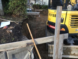 この画像も、石積み工事の基礎の床掘の様子です。