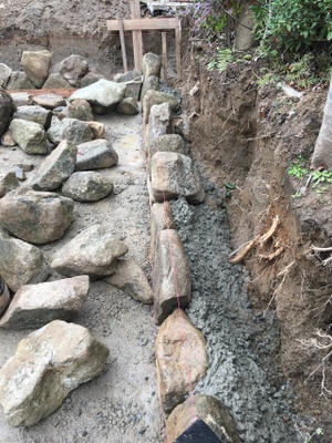 この画像は床掘といって石積みの基礎工事です。