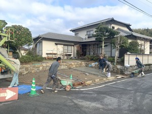 駐車場の土間コンクリート打設の様子です。