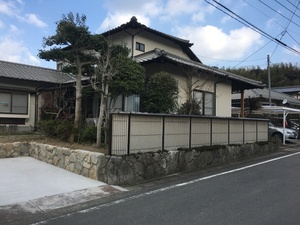 玄関前からの既存竹垣を駐車場側から撮った着工前の様子です。