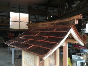 完成写真 銅板の小板葺きをアップで撮ってみました。