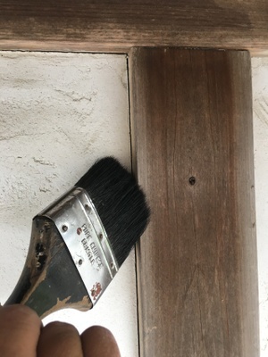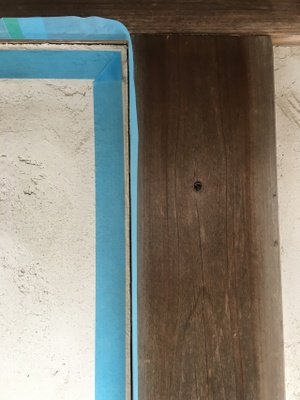 まず柱と漆喰の壁の取合い部を刷毛で埃などをきれいに清掃している様子です。