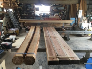 杉材の妻桁と杉材の太鼓梁です。いつもの製材所から仕入れた赤身の張った良質な