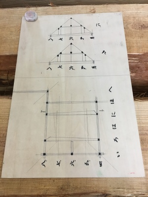 復旧改修します。その為には欠かせない図板です。図板には平面図と小屋組の断面図を書いています。