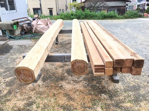 太鼓梁の加工が完了しました。この状態にしてから今度は墨を付けて行きます。