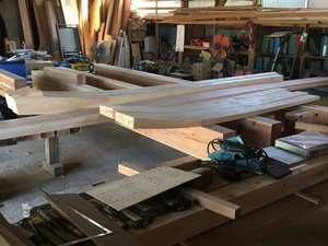 この間からアップしている入母屋造の屋根の再生工事の隅木を刻んみが完了した様子をアップ