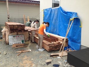 先週末は、お施主様と設計士さん達とデッキ造りをしました。と言っても1日で終わるわけもなく熱い中みなさん頑張っていました。2日間でデッキ材の塗装と束石の据え付けがやっとでした。よって今週末に持ち越しです。