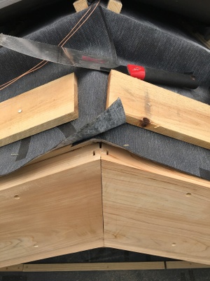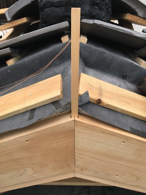 破風板の上端に瓦座を取り付けたらキツネ格子と破風板取り付け完了です。