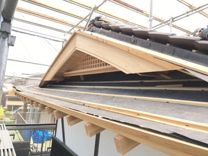 次回のブログでは、入母屋側の屋根に瓦を葺いている様子をアップしたいと思います。