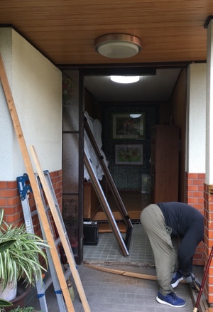 既存玄関ドアと軽鉄の枠を解体した状態の様子です。