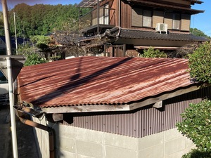 次回のブログではこの波トタンを剥いで痛んだ垂木などを補強した様子をアップしたいと思います。
