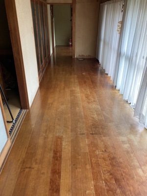 さて今日のブログは、玄関から廊下、広縁の床が痛んでブカブカすると