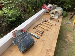 桧の無垢フローリングを張る前に道具を出した時になんかカッコよかったので