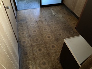今日のブログでは、昨年11月位に築150年以上の古民家の台所とダイニングの床と洗面脱衣室の床を