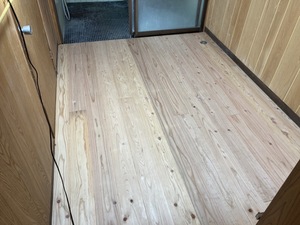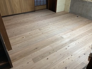 さて今日のブログも築150年以上のお宅のリビングと洗面脱衣室の床の