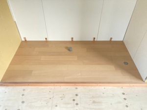 会議室の給湯スペースの床フローリングが貼り終わりました。