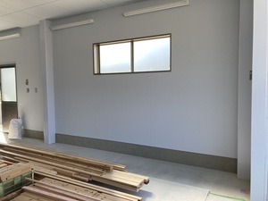 1階消防格納庫の左右の壁に棚を造る前の写真です。
