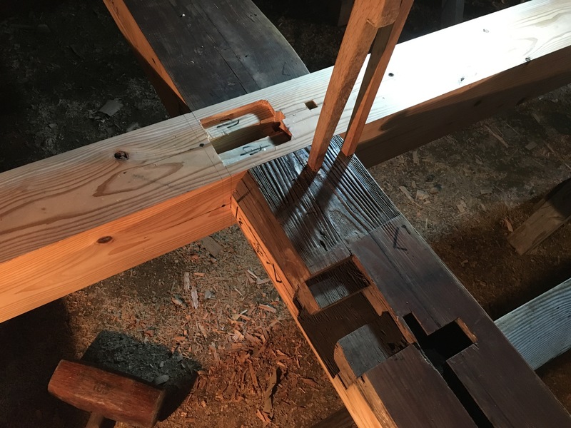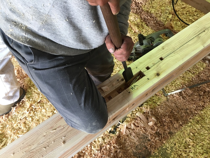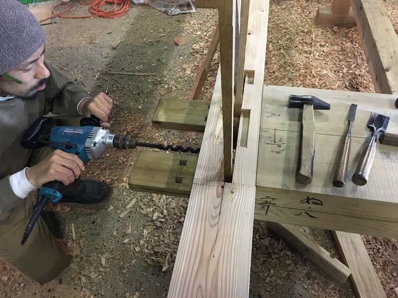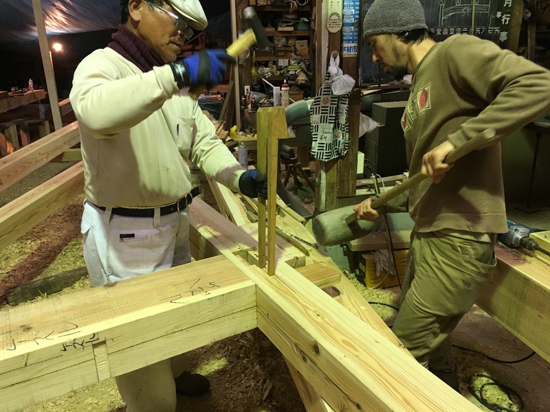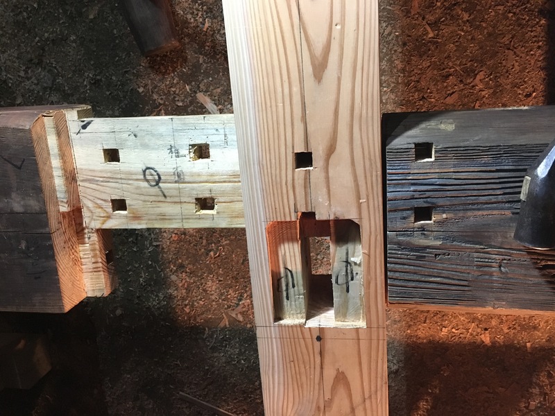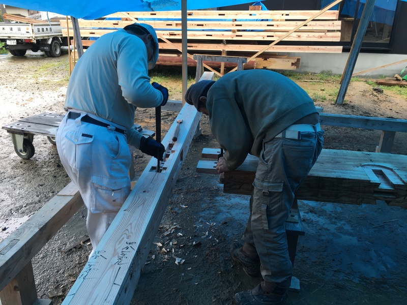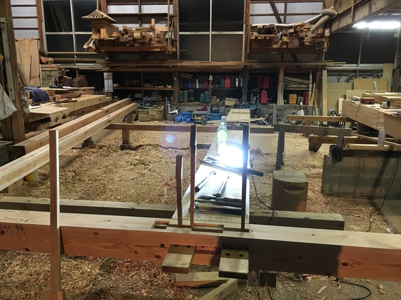 【熊本県 阿蘇市 古民家レストラン 阿蘇 はなびし】建築専門学校時代の友人の熊本地震復興古民家店舗再生工事 【通し柱手刻み、通し柱差し合わせ編】 (宗像市 白木建設)