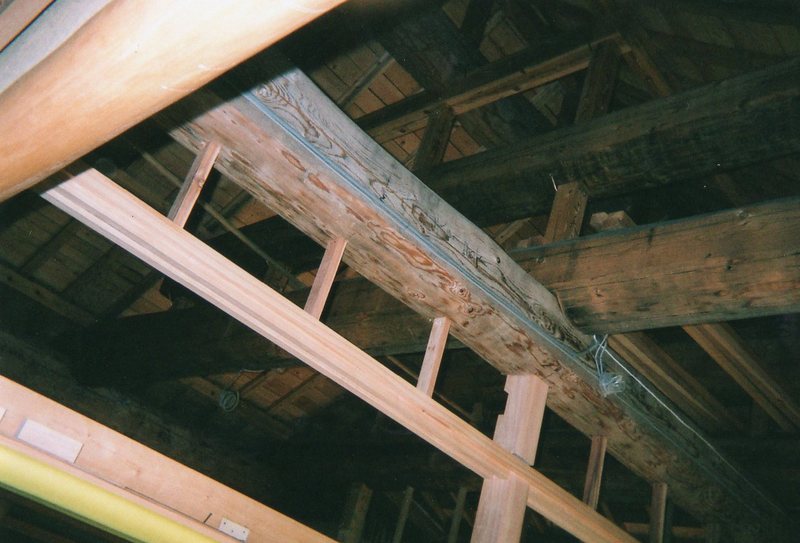 ⑯2階の棟木と高梁です。どんなに小さい屋根でも高梁は入れます。