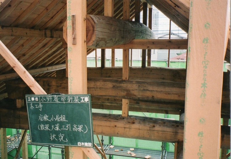 ⑦一際大きく見えるのが高梁です。これを入れてないと長年の瓦の重みに耐えれません。白木建設はこれが標準仕様です。