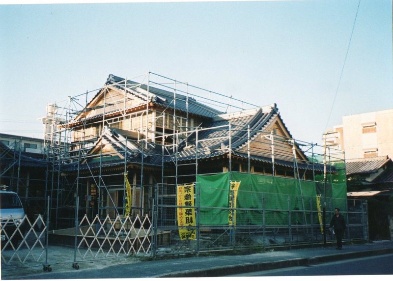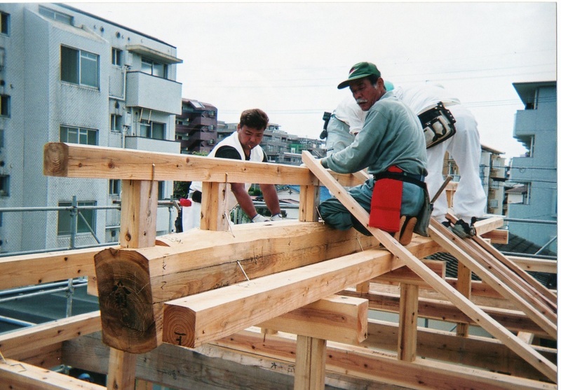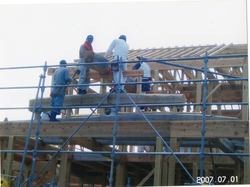 ⑰瓦葺き完了です。この状態になってから本当の木組みの強さが出てきます。瓦の荷重がかかってから家の安定感が出ます。