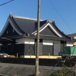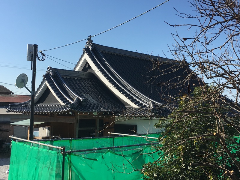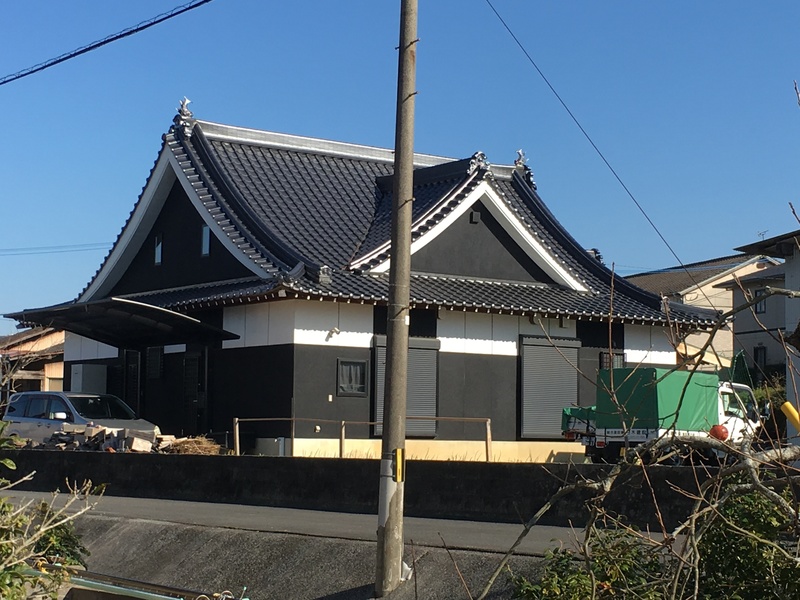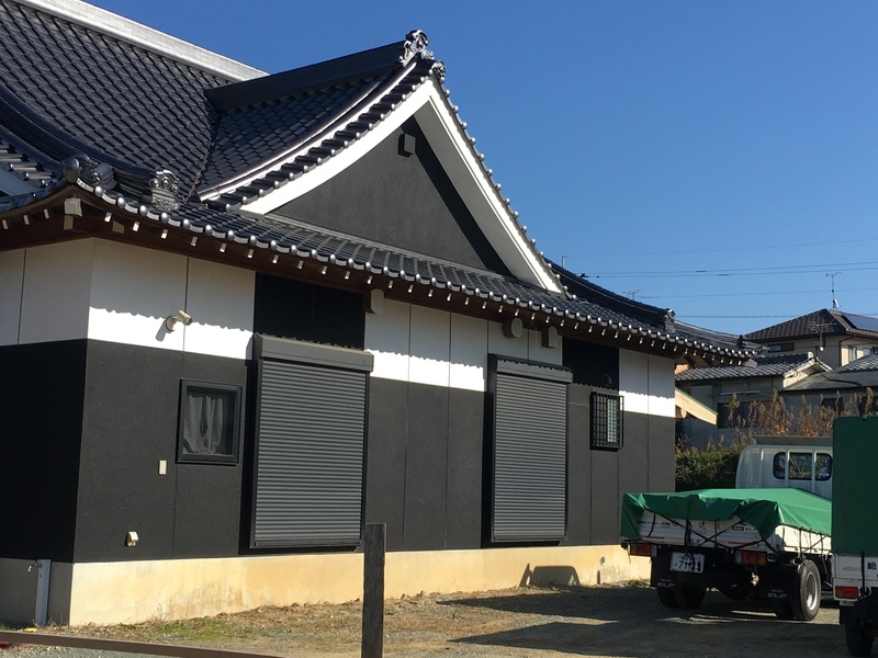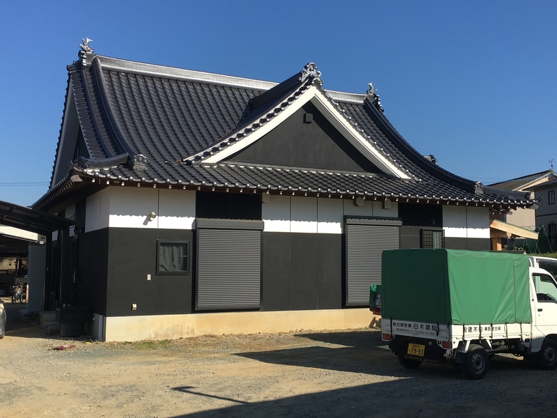 漆黒の矢切と白漆喰の破風と屋根の反りがとても優雅でありどっしりとした安心感を醸し出しています。