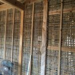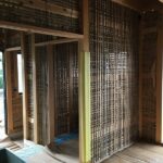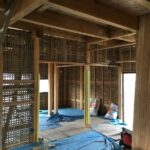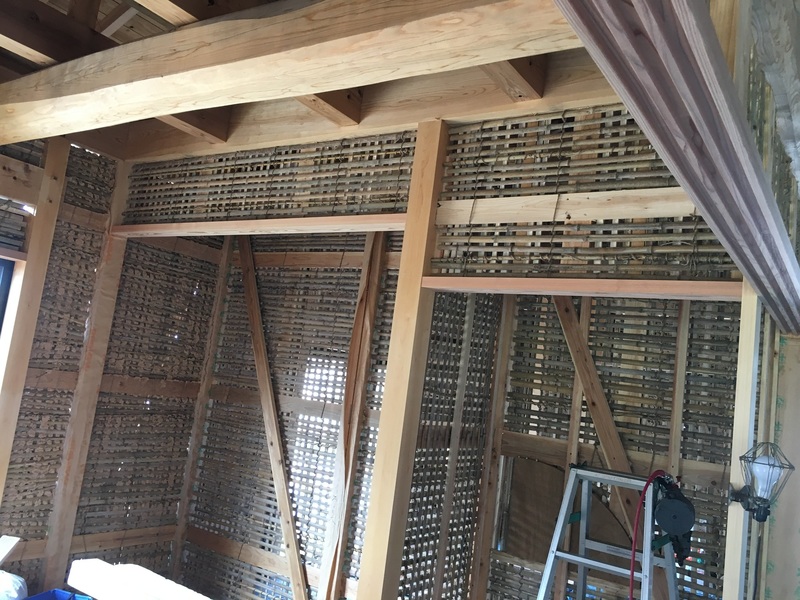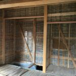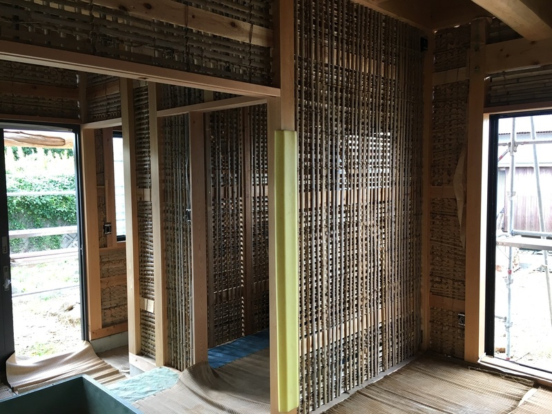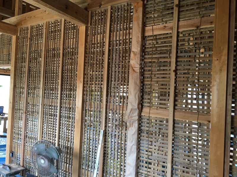 ⑨座敷、玄関ホールの間仕切り壁にエツリを掻いている様子です。